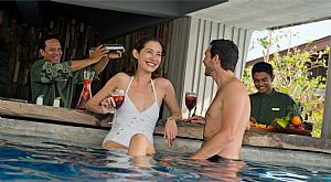 ¸²¹Ù Áü¹Ù¶õ¿¡ À§Ä¡ÇÑ Ç® ¹Ù(Pool Bar)´Â ¿©·¯ ÃþÀ¸·Î ÀÌ·ç¾îÁø 1Çퟸ£ ¸éÀûÀÇ ¼ö¿µÀåÀ¸·Î, ¸®Á¶Æ® ÁÖº¯À» ÈÖ°¨°í ÀÖ´Â µ¶Æ¯ÇÑ ±¸Á¶¸¦ ÀÚ¶ûÇÕ´Ï´Ù. Ç® ¹Ù¿¡¼´Â ¼ö¿µÀå ¹° ¼Ó¿¡¼ ¹ÙÅÙ´õ°¡ ¼ºùÇÏ´Â ½Ã±×´Ïó ĬÅ×Àϰú û·® À½·á, ÁÖ½º·Î °¥ÁõÀ» ÇØ¼ÒÇÒ ¼ö ÀÖÀ¸¸ç, Á¶±Ý ´õ Ưº°ÇÑ ºÐÀ§±â¸¦ ³»°í ½Í´Ù¸é ¼ö¿µÀå ¹° ¼ÓÀÇ ¹Ù ½ºÅø¿¡ ¾É¾Æ À½·á¸¦ Áñ±â°Å³ª ¼ö¿µÀå ¹ÛÀÇ µ¥À̺£µå¿Í Ä«¹Ù³ªÀÇ ½ºÇÁ¸µ ¸ÅÆ®¸®½º¿¡¼ Æí¾ÈÇÏ°Ô ÈÞ½ÄÀ» ÃëÇÏ¸ç ½Ä»ç¸¦ Áñ±æ ¼öµµ ÀÖ½À´Ï´Ù. ½Ä»ç ¸Þ´º·Î´Â °« ¸¸µç »÷µåÀ§Ä¡¿Í °Ç°½Ä »ø·¯µå, ½Å¼±ÇÑ ¼¸Ó·Ñ, Á¤Åë ÇÇÀÚ, ´ÞÄÞÇÑ ¾ÆÀ̽ºÅ©¸²°ú °úÀÏ ¼Å¹þÀÌ ÁغñµÇ¾î ÀÖ½À´Ï´Ù.