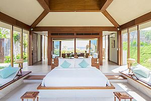 • Configuration - Four-bedroom ocean-front villa with private pool - 2 king rooms with en-suite bathrooms, showers & designer bathtubs; 2 twin rooms with en-suite bathrooms & showers - Spacious indoor and outdoor lounging and dining areas - Outdoor terraces and living areas beside large private pool, private spa facility for in-villa spa treatments |