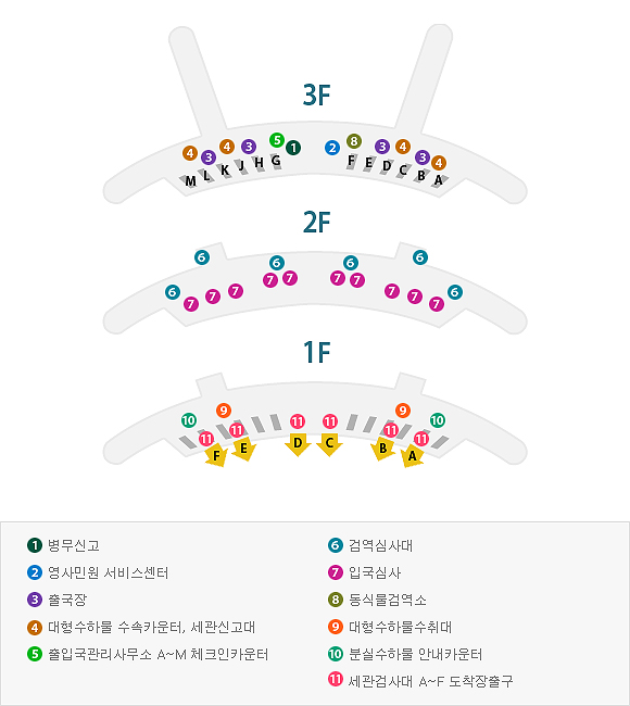 ¿©°´Å͹̳ΠÁö»ó 3ÃþÀº °Å´ëÇÑ ÁöºØ±¸Á¶¿Í Àü¸é Åõ¸íÀ¯¸®º® µîÀ¸·Î ÀÌ·ç¾îÁø °ø°£À¸·Î¼ ÀϹÝÁö¿ª(Landside)¿¡´Â ž½Â¼ö¼ÓÀ» À§ÇÑ Ä«¿îÅÍ¿Í ÆÐ¼Ç¿þ¾î¤ý±â³äǰ¤ý½ºÆ÷Ã÷¿ëǰ¤ýÀÇ·ù¸ÅÀå¤ý¹®±¸Á¡ µîÀÇ Àü¹®¸ÅÀå ¹× ¼öÇϹ° Æ÷Àå ¹× º¸°ü¤ýÅùè¤ý½ÄÀ½·áÁ¡¤ýÆíÀÇÁ¡ µîÀÇ ÆíÀǽü³ÀÌ ÀÖ½À´Ï´Ù. Áö»ó 3ÃþÀÇ º¸¼¼Áö¿ª(Airside)¿¡´Â Ãâ¹ß¿©°´À» À§ÇÑ º´¿ª½Å°í¼Ò¤ýº¸¾È°Ë»ö´ë¤ý¿©±Ç½É»ç´ë¤ýÃâ¹ß´ëÇսǰú ž½Â¶ó¿îÁö µîÀÇ Ãâ±¹ °ü·Ã ½Ã¼³°ú Àü¹®»óÁ¡¤ý½ÄÀ½·áÁ¡¤ý¸é¼¼Á¡¤ýȯÀü¼Ò µîÀÇ ÆíÀǽü³ÀÌ ÀÚ¸®Àâ°í ÀÖ½À´Ï´Ù.